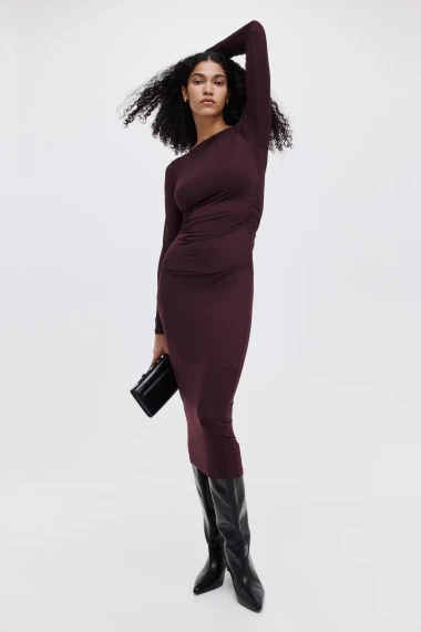 Za dnevne kombinacije dovoljno je dodati jedan ljubičasti detalj – kaput, torbu ili pulover – kako bi se postigao efekt promišljene elegancije. U poslovnim kombinacijama tamno ljubičasta može zamijeniti uobičajene neutralne tonove, osobito u krojenim odijelima ili midi suknjama, dok je za večernje trenutke izbor jednostavan – baršunasta haljina u ovoj nijansi uvijek ostavlja dojam bezvremenske sofisticiranosti.