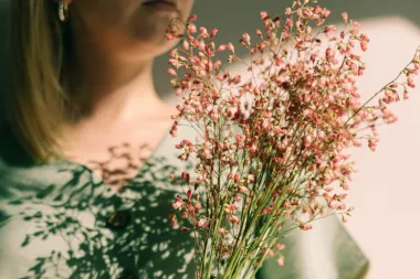 Bluza od tila s uzorkom, u nježnim, pastelnim nijansama.