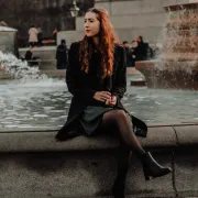 Elegantni kaput u crveno-smeđoj boji, idealan za hladnije jesenske dane.